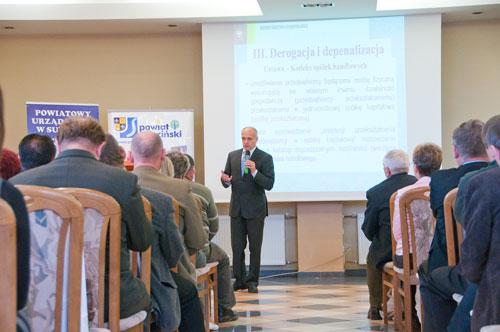Pierwsza część konferencji poświęcona była sprawom gospodarczym. Działania samorządu województwa lubuskiego w zakresie rozwoju gospodarczego przedstawił Marszałek Województwa – Pan Marcin Jabłoński, a zakres przygotowanego do wdrożenia przez Rząd pakietu deregulacyjnego, czyli rozwiązań administracyjnych ułatwiających funkcjonowanie firm – Pan Krzysztof Galas, dyrektor do spraw regulacji gospodarczych w Ministerstwie Gospodarki. Złoty Herb Powiatu Sulęcińskiego będący wyrazem uznania i wdzięczności za zasługi dla powiatu otrzymał Krzysztof Kononowicz – Prezes Związku Pracodawców „Przedsiębiorczość" z Sulęcina i jednocześnie Prezes firmy LEKS.